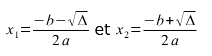 Pour Δ = b² – 4ac ;